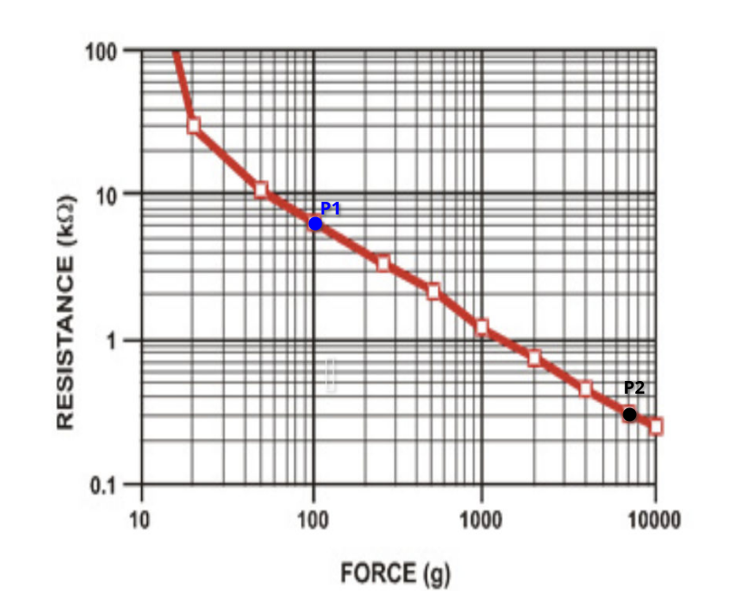 The correlation between force and sensor resistance is given by the manufacturer is presented in Figure 3.